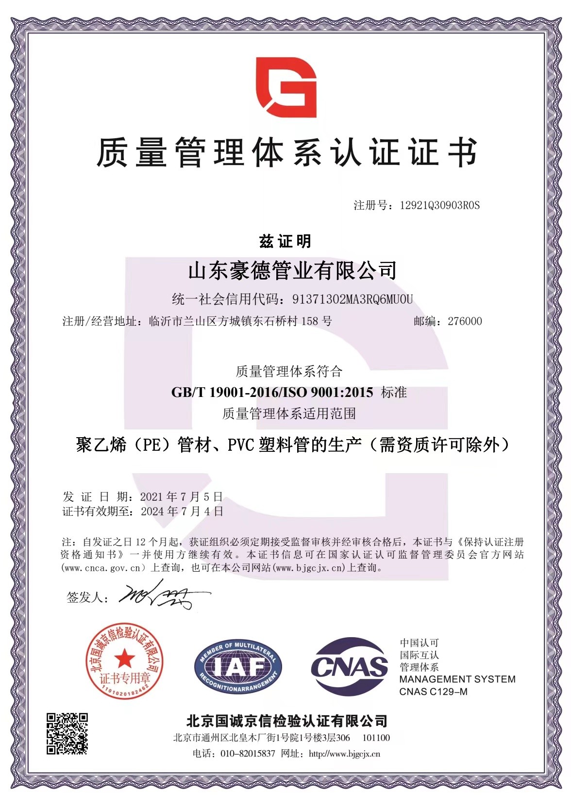 山东豪德管业有限公司豪德——专业pe管材生产厂家公司是聚乙烯PE管材管件生产建设基地,年产各类PE管材近亿吨,综合性能好。